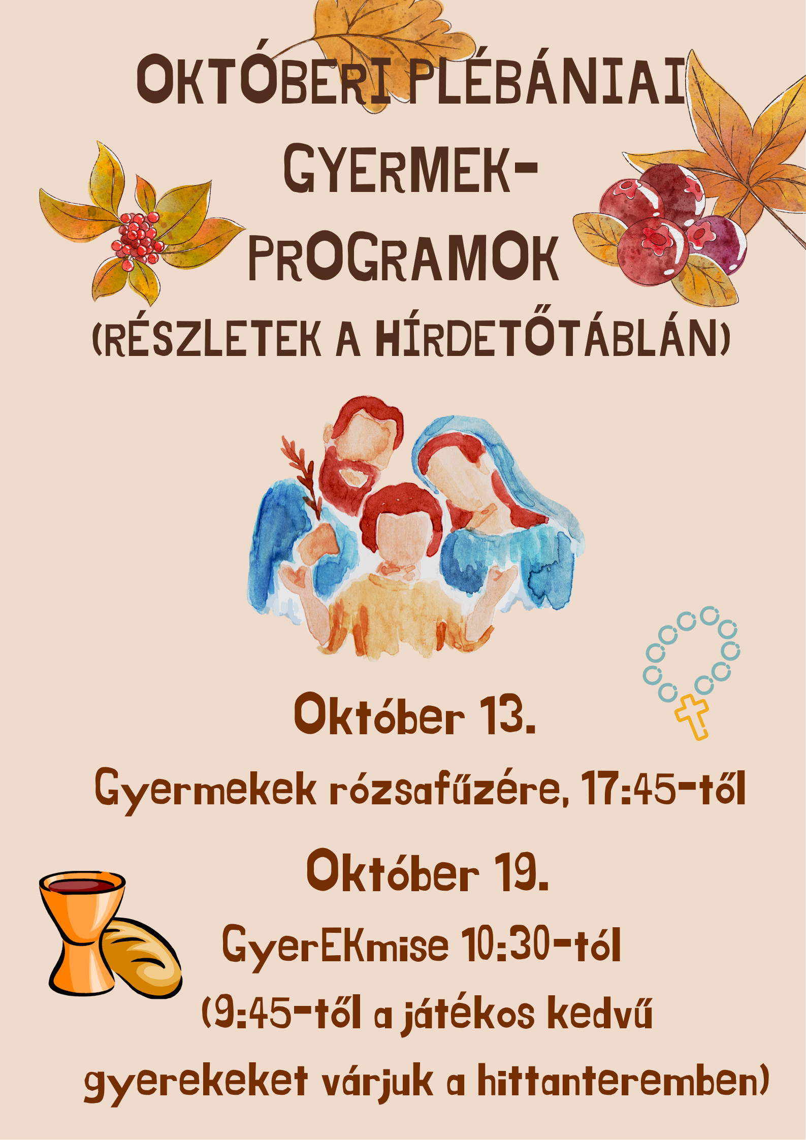 Október 19. 10:30 Gyerekmise. Előtte 9:45-től várjuk a játékos kedvű gyerekeket a hittanterembe!