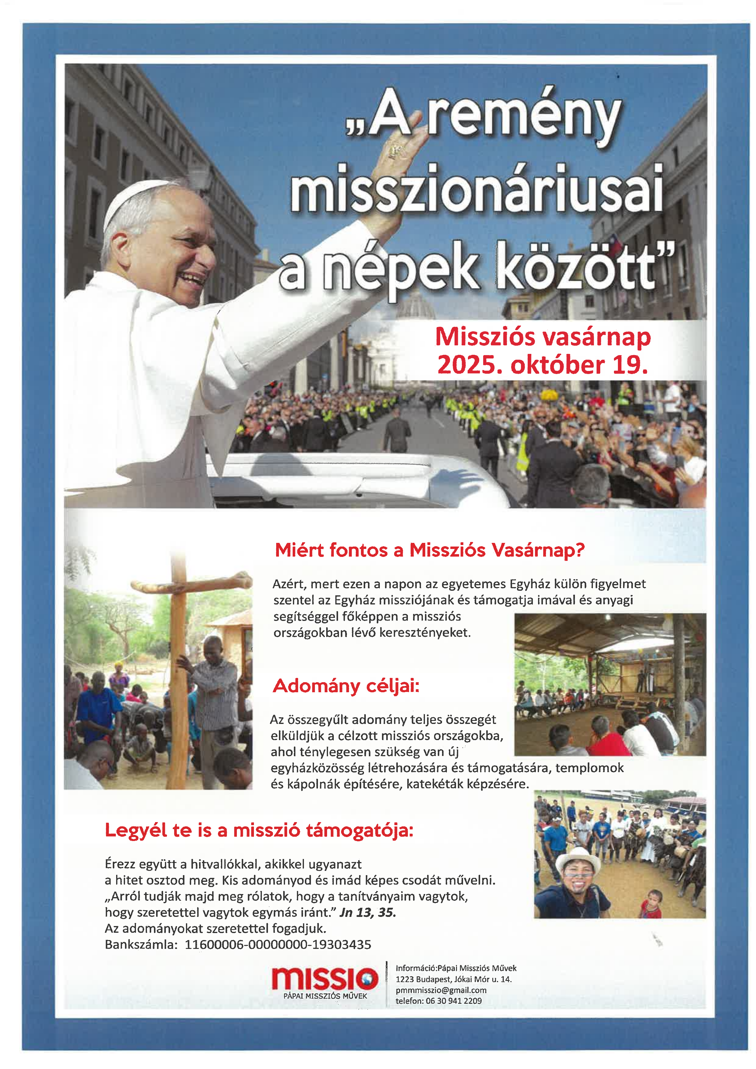 megtartandó hálaadó szentmisénk dátuma. A napi imádságokat az intézményeinkben és a központunkban